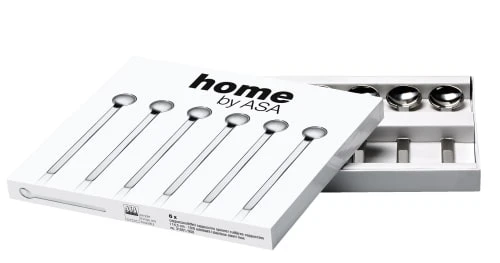 La longueur d’une cuillère est de 9.5cm pour le petit modèle, 14.5 pour le grand. Livrées dans une boîte cadeau.