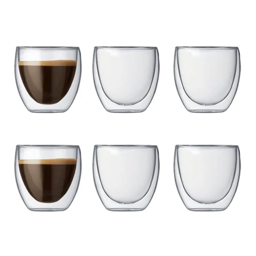 Bodum Bols, Tasses Et Mugs Set De 6 Gobelets Double Paroi 8 Cl En Verre Transparent