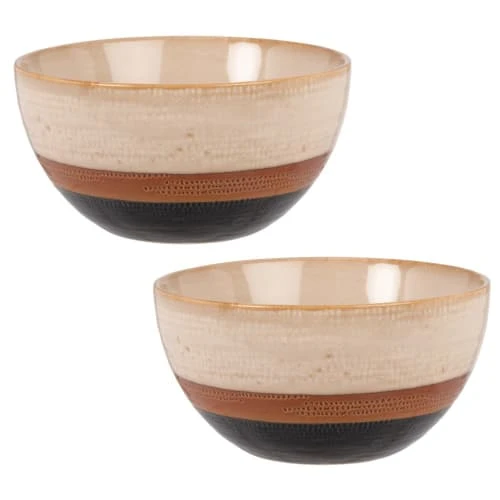 Maisons Du Monde Bols, Tasses Et Mugs Bol En Faïence Beige, Marron Et Gris Anthracite – Lot De 2