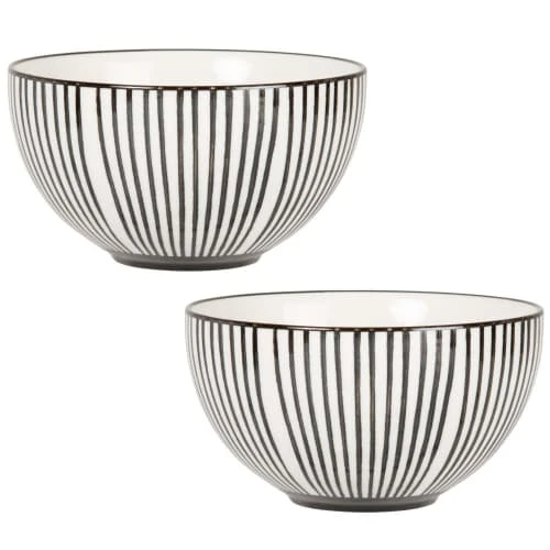 Maisons Du Monde Bols, Tasses Et Mugs Bol En Grès Blanc Motifs Traits Noirs – Lot De 2