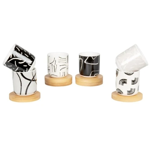 Maisons Du Monde Bols, Tasses Et Mugs Coffret Tasses En Porcelaine Motifs Noirs, Blancs Et Gris (x6) Et Soucoupes En Manguier