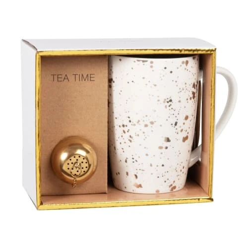 Maisons Du Monde Bols, Tasses Et Mugs Coffret Tisanière En Grès Blanc à Taches Dorées Et Métal