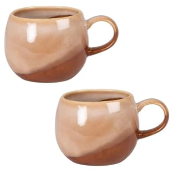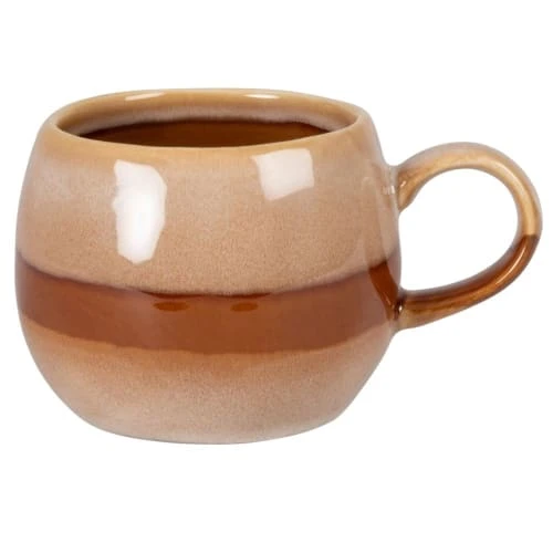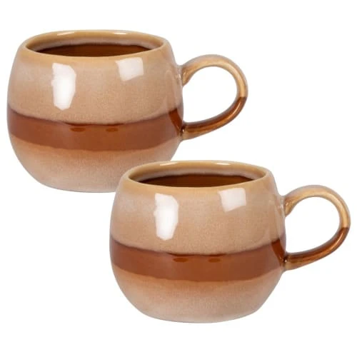 Maisons Du Monde Bols, Tasses Et Mugs Mug Boule En Grès Marron Brillant Et Beige Motifs Traits – Lot De 2