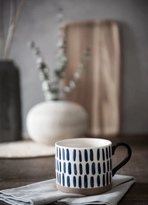 Maisons Du Monde Bols, Tasses Et Mugs Mug En Faïence Blanche Motifs Traits Bleus – Lot De 2
