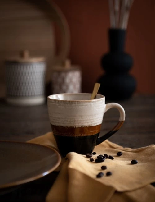 Maisons Du Monde Bols, Tasses Et Mugs Mug En Faïence Crème, Marron Et Grise – Lot De 2