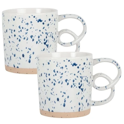 Maisons Du Monde Bols, Tasses Et Mugs Mug En Grès écru, Bleu Marine Et Sable – Lot De 2