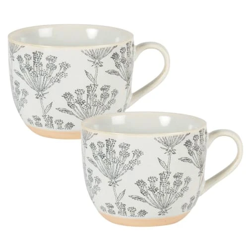 Maisons Du Monde Bols, Tasses Et Mugs Mug En Grès écru à Motifs Bleu Gris – Lot De 2