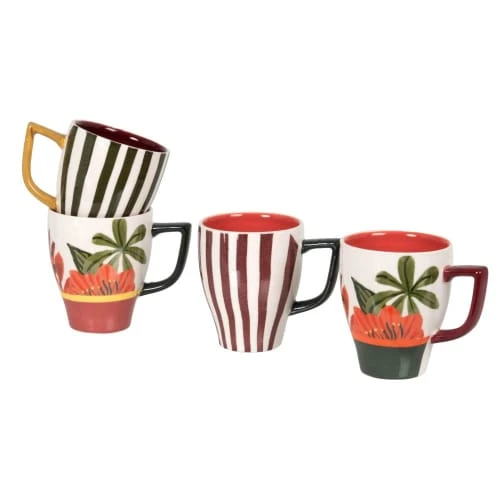 Maisons Du Monde Bols, Tasses Et Mugs Mugs En Grès Multicolore (x4) Et Support Arbre En Bois D’hévéa
