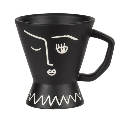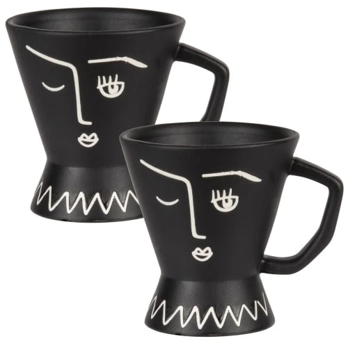 Maisons Du Monde Bols, Tasses Et Mugs Tasse En Porcelaine Noir Mat Imprimé Blanc – Lot De 2