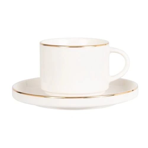 Maisons Du Monde Bols, Tasses Et Mugs Tasse à Thé Et Soucoupe En Porcelaine Blanche Et Dorée – Lot De 2