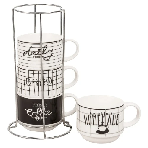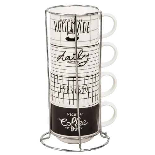 Maisons Du Monde Bols, Tasses Et Mugs Tour 4 Tasses En Faïence Noire Et Blanche