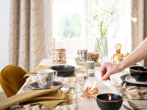 Maisons Du Monde Vaisselle De Noël Coffret Mug En Porcelaine Imprimé Et Cuillère En Métal Doré