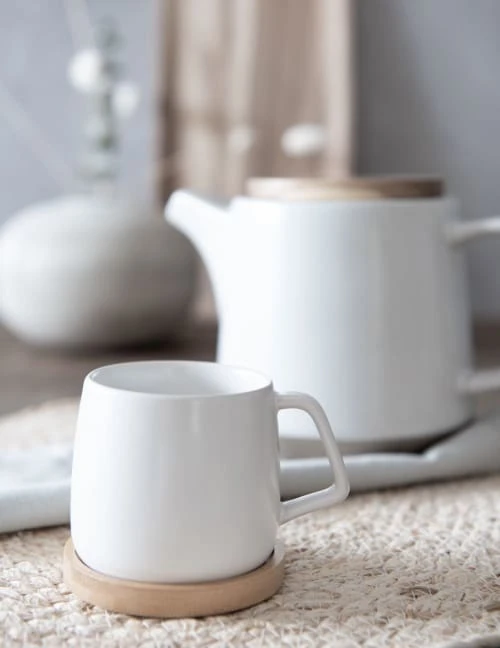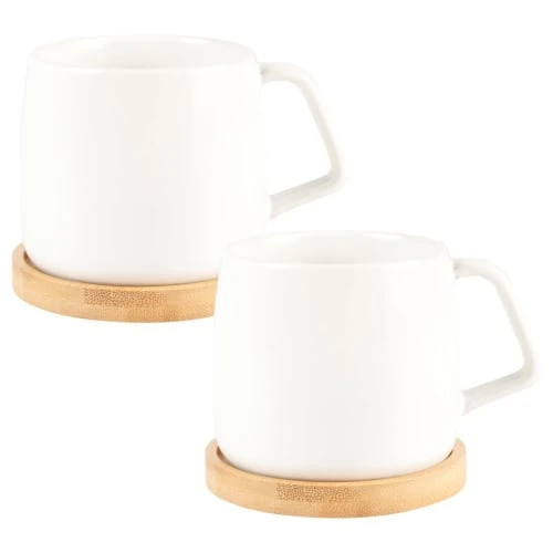 Maisons Du Monde Vaisselle De Noël Tasse Et Soucoupe En Faïence Blanche Et Bambou – Lot De 2