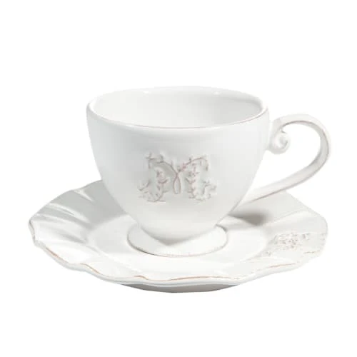 Maisons Du Monde Vaisselle De Noël Tasse Et Soucoupe à Thé En Faïence Blanche – Lot De 2