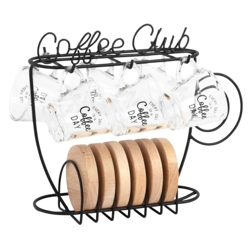 Maisons Du Monde Vaisselle De Noël Tasses à Café En Verre (x6) Et Support En Métal Noir