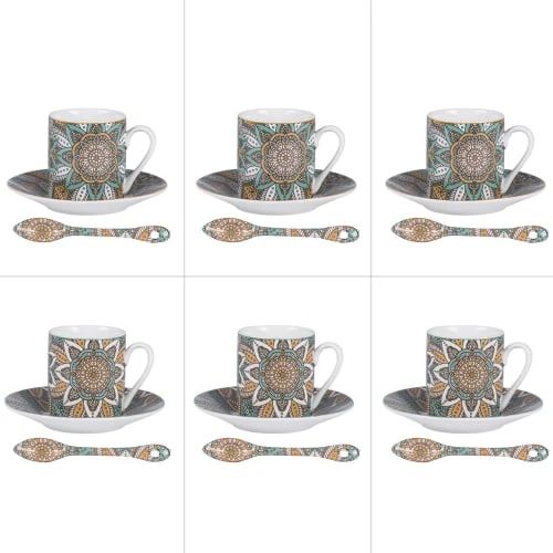 Table Passion Bols, Tasses Et Mugs Coffret 6 Tasses à Café Et Cuillère 10 Cl En Porcelaine Décoré